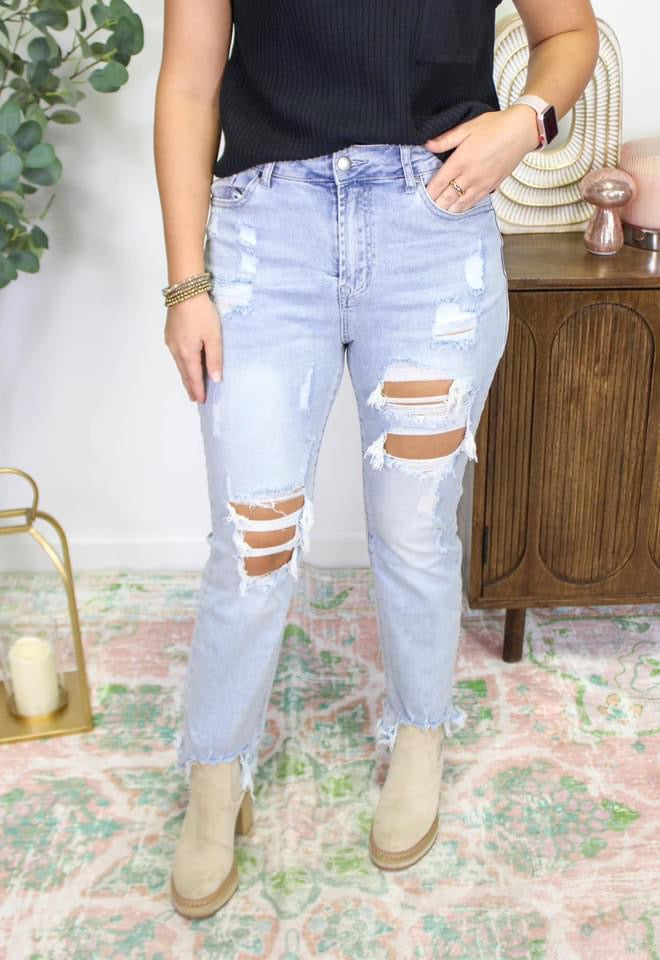 Distressed Light Straight Jean