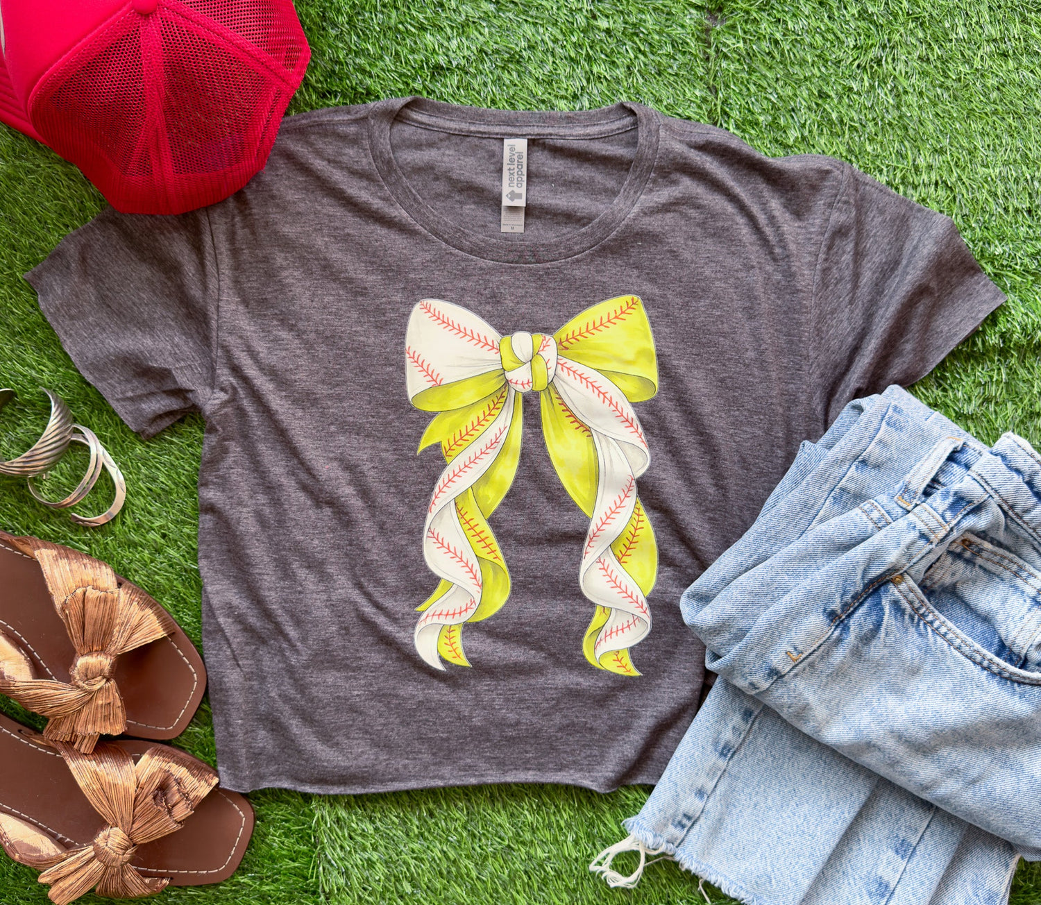 Score major style points with this gorgeous softball ribbon bow design now available as a flowy crop top! This cropped style brings a fresh, flirty vibe to traditional team spirit wear. A must-have addition to your baseball collection that appeals to trend-savvy customers looking for sporty meets chic!